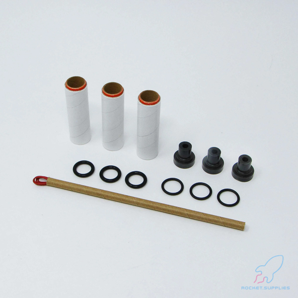 The AeroTech motor reload kit comes with 3 rocket motor reloads. Reload kits include all internal motor components and FirstFire™ Initiators. This AeroTech motor is U.S. mailable with no hazmat fee! The sale of this high power motor to persons under 18 years of age is currently prohibited by federal law. Orders containing this item will not be shipped until proof of age (such as a copy of a driver’s license) is received.