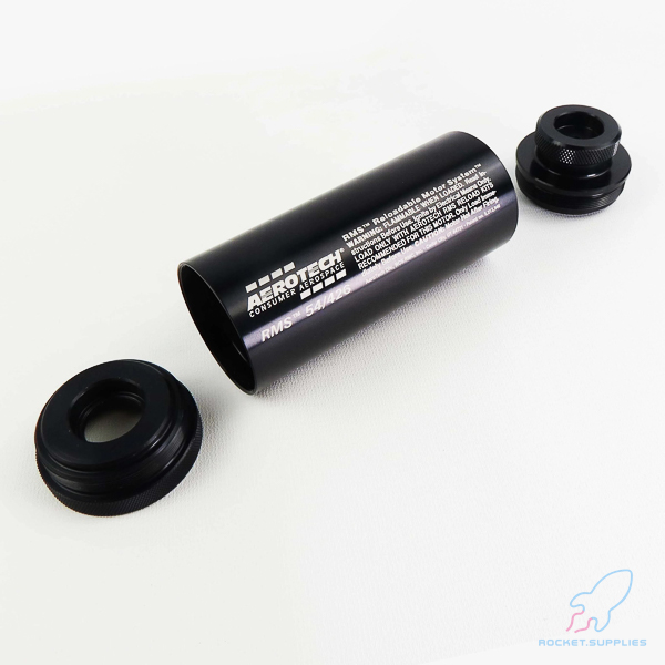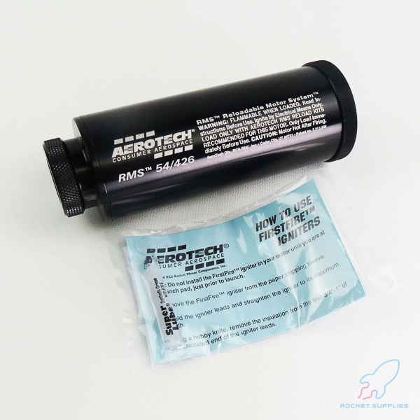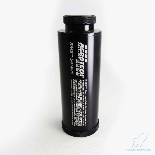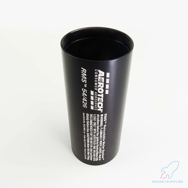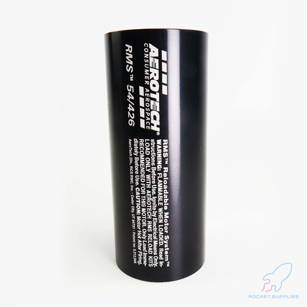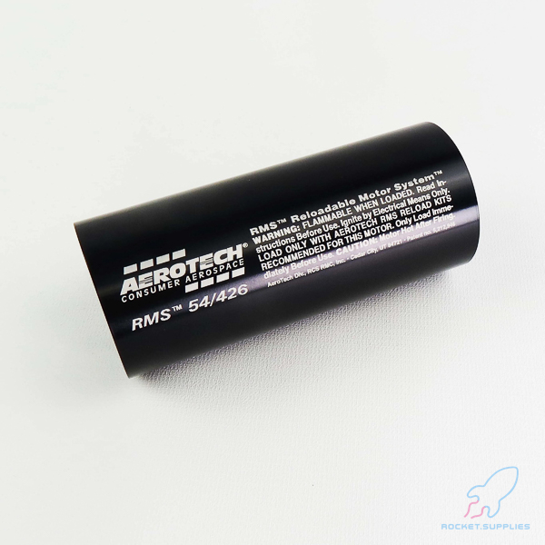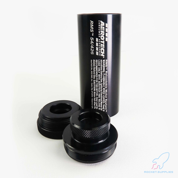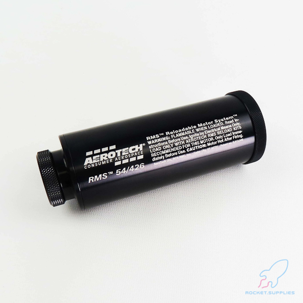For use with all AeroTech RMS-54/426 high power motor reload kits. This reusable AeroTech RMS-54/426 motor hardware set includes the aluminum motor case, motor forward closure, small nozzle motor aft closure (54ACCSN), and a 1cc tube of the Super-Lube grease for assembly. Motor reloads sold separately. Important: High Power RMS reload kits are not compatible with Mid Power RMS products.