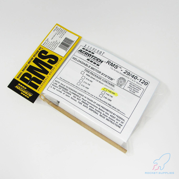 The AeroTech Reloadable Motor System RMS is an aluminum cased reusable motor in kit form that is assembled by the user. You will need AeroTech RMS-29/40-120 motor hardware to build and complete the motor for many reliable flights. Motor hardware is available separately in a complete set, and also as individual parts. Important: Mid Power RMS reload kits are not compatible with High Power RMS products. This RMS motor reload utilizes RCSs exclusive White Lightning™ aerospace grade composite propellant formulation, which produces a gorgeous bright white flame with lots of dense white smoke and a throaty roar at lift-off.