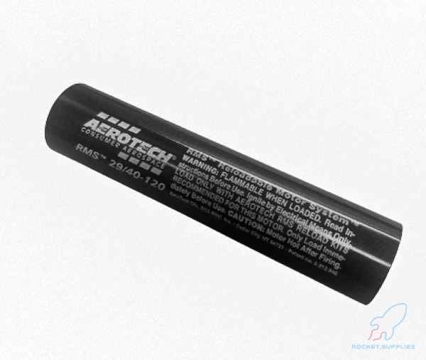 For use with all AeroTech RMS-29/40-120 motor reload kits. This reusable AeroTech RMS-29/40-120 aluminum motor case requires a forward closure and aft closure. Motor reloads and closures sold separately. Important: Mid Power RMS reload kits are not compatible with High Power RMS products.