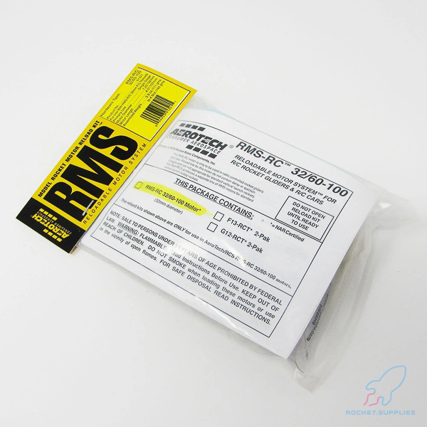 For use with all AeroTech RMS-R/C-32/60-100 motor reload kits. This reusable AeroTech RMS-R/C-32/60-100 motor hardware set includes the aluminum motor case, permanently plugged forward closure, aluminum motor aft closure, and a 1cc tube of the Super-Lube grease for assembly. Motor reloads sold separately. Important: Mid Power RMS reload kits are not compatible with High Power RMS products.