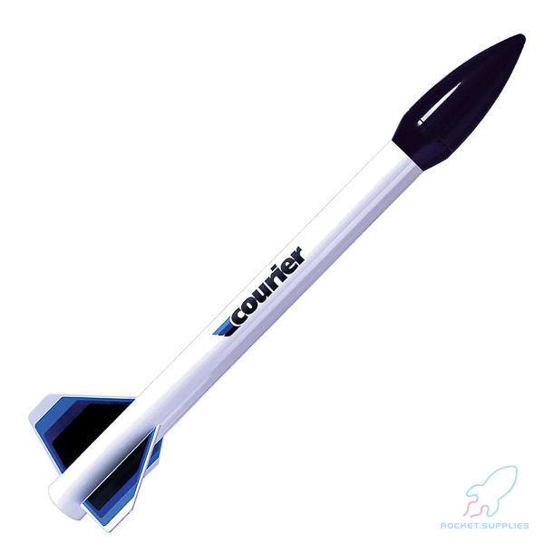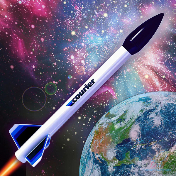 We can't think of many other ways that you can send an egg sailing 400 feet into the air and return it safely to Earth (and in time for breakfast!) The specially designed nose capsule comes unpadded - requiring you to experiment with various methods of protecting Mr. Egg. The Courier model rocket has a traditional balsa fin design and features its own dual parachute recovery system.