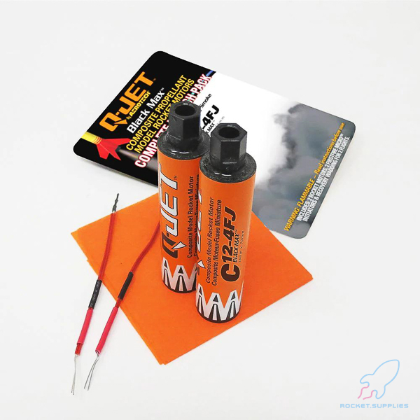 This Q-Jet™ 2-Motor Launch Pack comes complete with FirstFire™ Micro Initiators and bright orange Parachute Recovery Wadding. All Q-Jet™ motors are U.S. mailable with no hazmat fee!