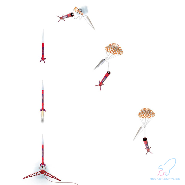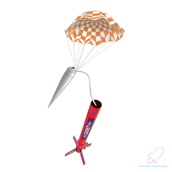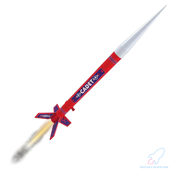 A fast and easy build, featuring injection molded base with integral fins and launch lugs. Includes a pre-colored body tube with stickers for decoration. No painting required. Utilizes a 12 inch brightly colored parachute for recovery. Great looking and fast assembly is why you’ll love the Cadet.