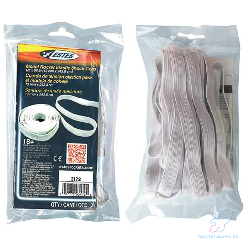 This accessory pack contains 3, 1/2 in. x 96 in. heavy duty elastic shock cords for shock your next big rocket design or as a replacement.