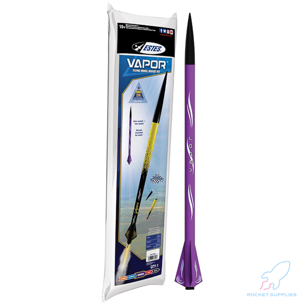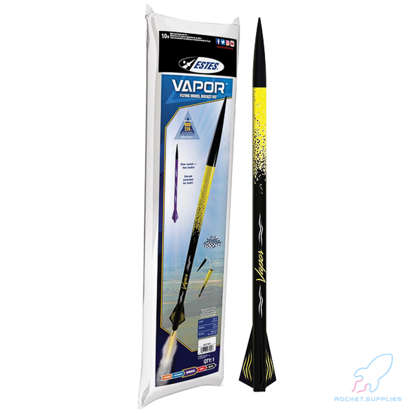 The Vapor disappears into the sky on D and E engines, like a puff of smoke. It’s not for the faint of heart. This Estes rocket is for the advanced builders and adrenaline junkies. After carefully crafting this sleek model rocket, take the Vapor to the flying field to feel those massive motors rumble through your chest as it soars up to 900 ft.
