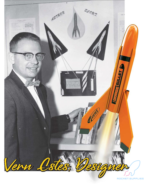 The Orange Bullet is the first release in the Estes Designer Signature Series. This series will re-introduce lesser known classics and launch never-before seen designs by some of the most famous pioneers of the model rocket industry. The Introductory rocket was designed by none other than Vern Estes himself!