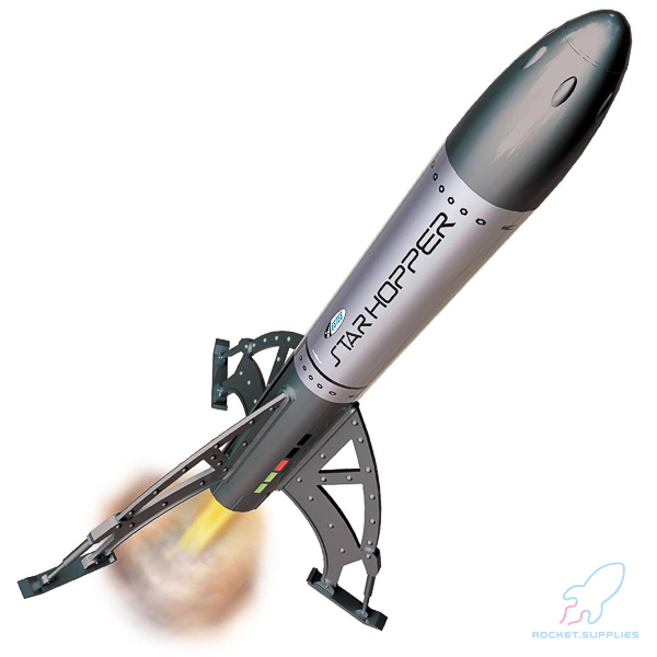 Prep the Estes Star Hopper with a recommend Estes engine (not included) and get ready for fantastic flights up to 400 feet – great for demonstrations and small field flights. Watch at apogee as the rocket ejects a 18-inch streamer to slow its fall and help you track it to the ground. With the twist-on engine retainer for fast engine loading, and a relatively wide body tube for easy ejection wadding and streamer packing, you’ll have your rocket ready to launch in no time! While the real Star Hopper may only be a myth, the Estes Star Hopper is real and ready to fly!