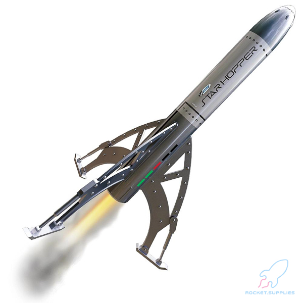 Was there really a Project Star Hopper? It’s hard to say. No documents or proof exists – just rumors and speculation. Based on the scant evidence available, Estes has designed a detailed model of this cryptic craft. The Estes Star Hopper is a Beginner-Level kit that all rocket lovers will be thrilled to own and fly. This is a no-glue, no-paint, snap-together kit that anyone can build and launch all in the same day. Featuring detail-molded plastic fins, nose cone, and engine mount, this kit not only looks great but is built to survive even the roughest landings. Pre-finished in a retro atomic-age silver paint scheme, the Star Hopper is a stylish kit that looks great and flies even better!