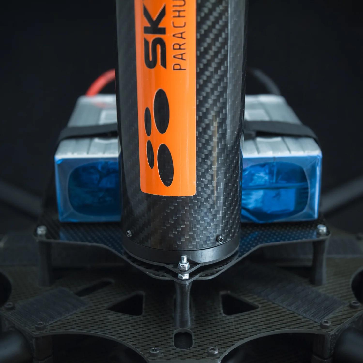 This install mount is designed specifically for DJI S1000 and has extra holes to match with many other airframes. The mount is compatible with X55-CF and X68-CF parachute launchers.