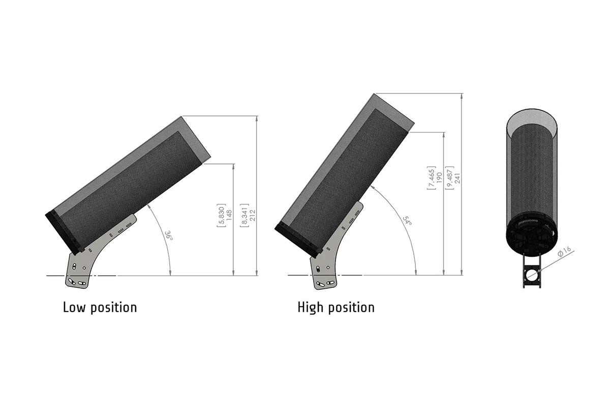 This universal mount makes it easy to mount the launcher to the motor arm or other round tube. Launcher angle can be adjusted for ideal fit.