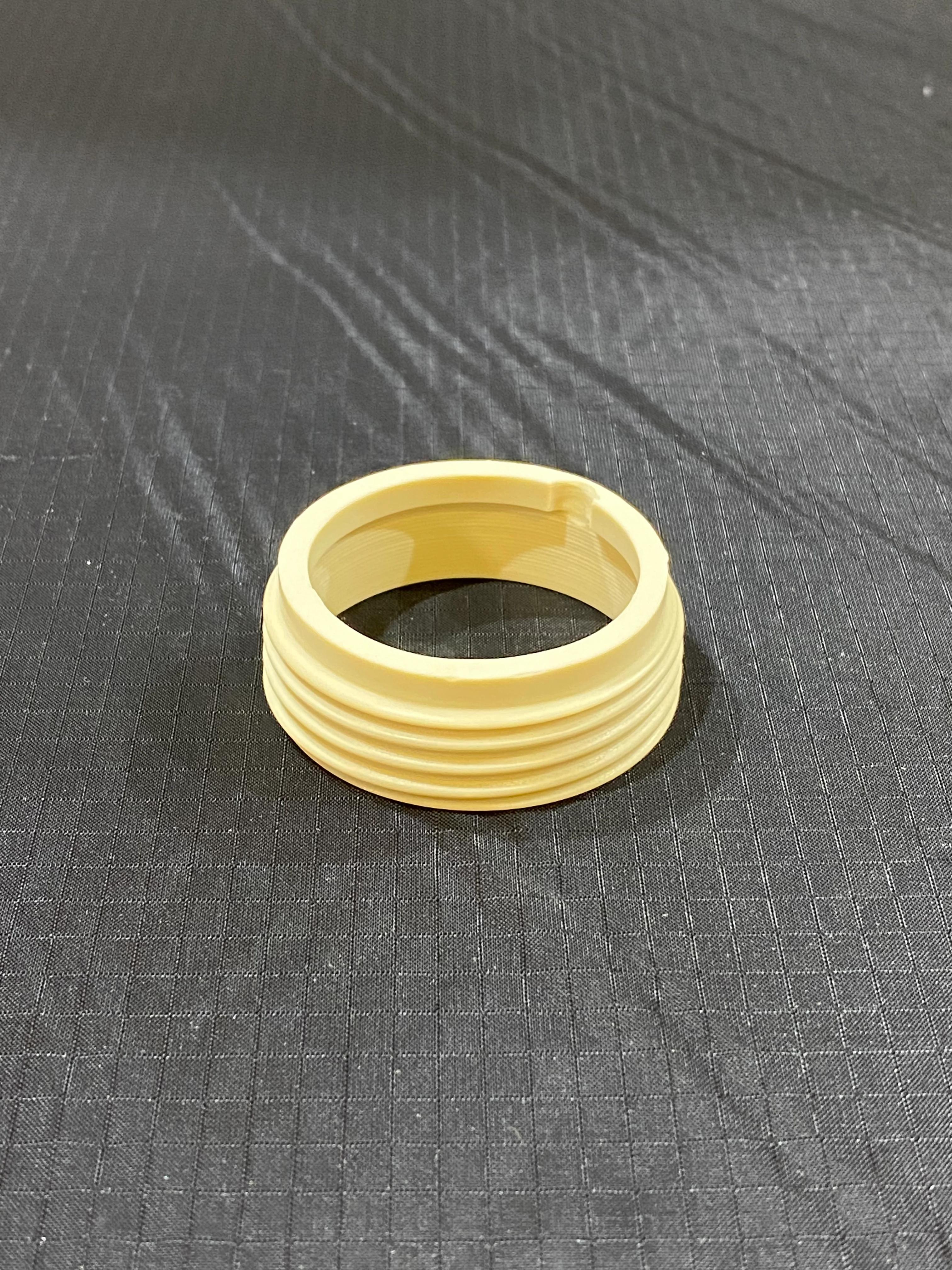 Threaded sleeve for altimeter bay in CPR-MAX systems. Urethane. Retainer cap above screws onto it.