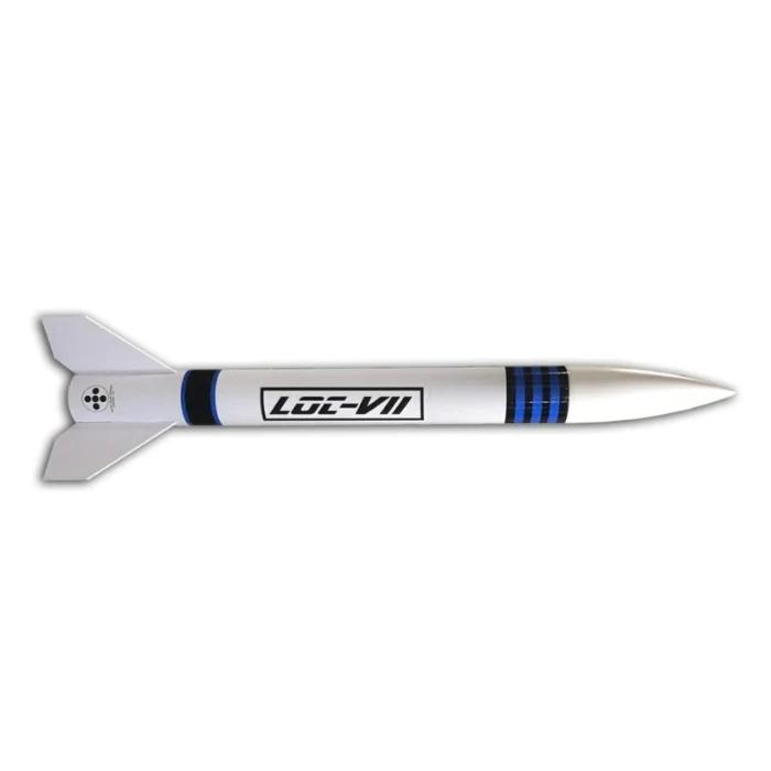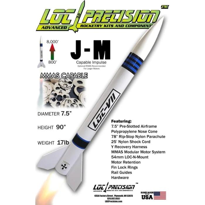 7.5" version of the popular LOC-IV rocket. Sporting new features like the Loc-n-ring system, MMAS Modular Motor Adapter System, and a 1" tubular nylon recovery harness. The kit comes with a 54mm modular adapter, 78" parachute, 25' of 5/8" tubuler nylon with loops sewn. 1500 Rail buttons, all necessary hardware and motor retention!!!