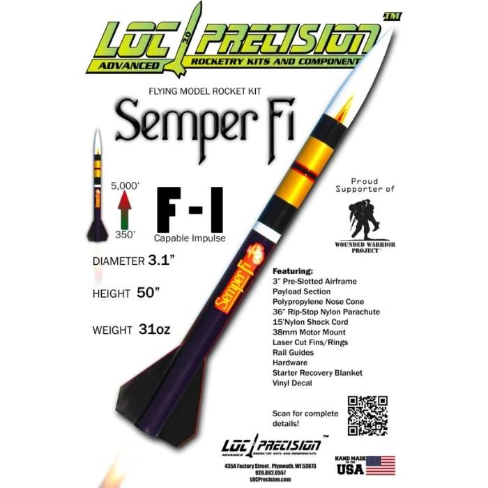 In honor of our fallen military service members, LOC Precision wishes You and Yours a happy Memorial Day. As today approached, we at LOC realized there was something missing from our arsenal. We have the Patriot, Phoenix, Hawk, etc.., all US Military Missiles. We knew in our hearts we had to search for a tribute to the valorous dedication to this Country from every branch. In honor of the Men and Women who exemplified the loyalty, courage and strength to serve the United States of America, and whom never touched foot to the Homeland again, we introduce to you the Semper Fi. The Semper Fi is a token to ‘Nobody being left behind or forgotten’. The Semper Fi defines strict lines and precision, perfection and excellence. We hold the highest solemn respect and gratitude to our fallen. These bad boys will pack a punch with their power and gusto. Fly them high, fly them proudly, fly faithfully, fly them in honor of those who gave the greatest gift to ensure our freedom. LOC promises the spouses, parents, children, brothers, sisters, friends, neighbors that EVERY SALE of this glorious military model rocket will generate a donation to the Wounded Warrior Project. We cannot say THANK YOU enough to Our Military. Happy Memorial Day. Please help us welcome the first branch to our line of tributes, this is the much needed rocket: Semper Fi!