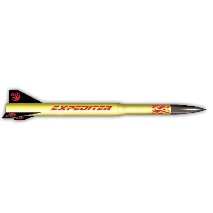 The Expediter Rocket Building Kit is one of the ISP PERFORMANCE SERIES of kits, which feature factory pre-slotted airframe and through-the-wall fin construction and high power motor capabilities, the EXPEDITER offers sleek styling due to the use of LOC’s exclusive airframe reducer. The 54mm motor mount is great for low thrusting 54mm motors like the J90 or I65. This model missile is a great Level 1 kit that flies on a variety of H and I motors. It is a very cool looking, versatile rocket.