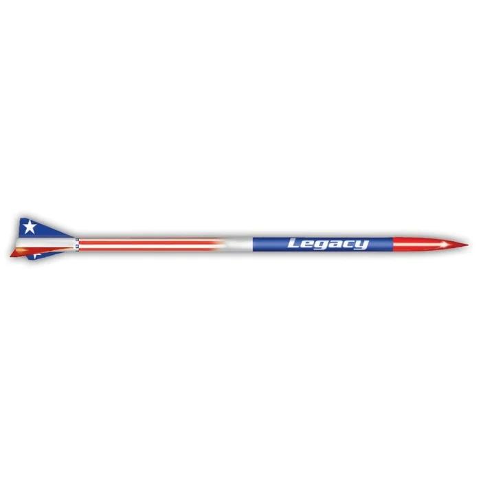 One of the original EXPLORER SERIES KIT SERIES which include pre-marked airframe and 29mm motor mounts, the LEGACY is a payload carrying vehicle standing over 4' tall. It can be flown on an Estes D12-3 motor with an optional MMA-1 Adapter but goes out of sight on Aerotech 29mm Composite Motors! Parachute Recovery.