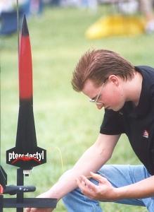 Use an F motor for slow, graceful flights or pack it with a G motor for real excitement. We’ve even flown the Tiny Pterodactyl on an H-238 and amazed the crowd with a neck-snapping transonic flight!** Nose weight was added to keep the CG forward of the CP during this flight. Some rocketeers like to keep two nosecones on hand: one weighted for higher power motors and a standard one for lower power flights.