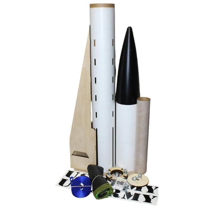 Complexity: Expert Diameter: 4″ Height: 54" Weight: 5.5lbs Motor Mount: 54mm LNR compatable Parachute Size: 50" Ripstop Nylon Shock Cord Type: NW-15 15' 3/8″ Nylon with sewn loops Shock Cord Mount: SCM-3 Eyebolt Fin Thickness: 1/4″ Ring Thickness: 1/4″ Instructions: Yes
