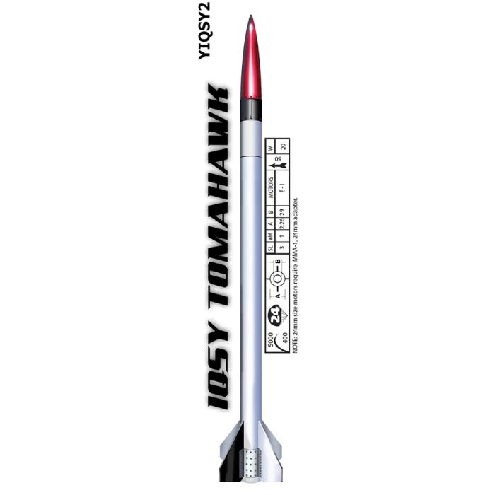 Choose between an advanced or performance series kit. 29mmt or 38mmt depending on field and ability. The 29mmt is an advanced series kit, which feature factory pre-slotted airframe and through-the-wall fin construction, the IQSY is our sport scale version of the famous Tomahawk rocket. The 29mm motor mount is perfect for F and G motors and the rugged airframe can take I power if you can handle it. Parachute Recovery. The 38mmt version is great as a stand alone kit or ready to be married to the 3" Booster section.