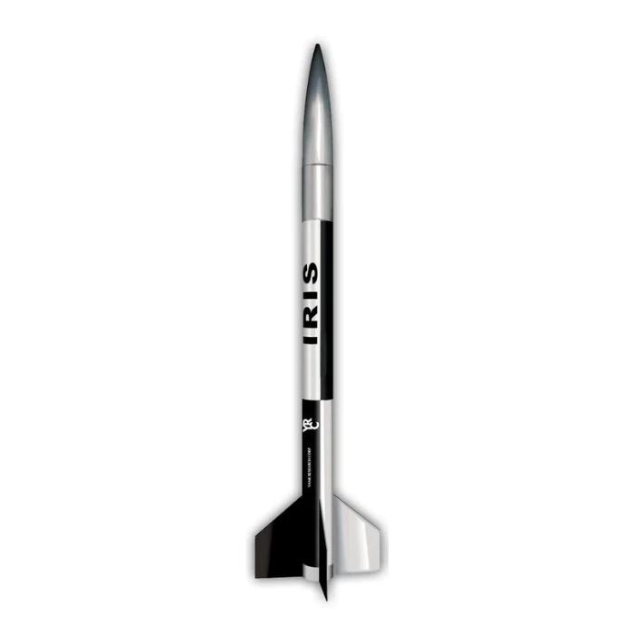One of the ADVANCED SERIES of kits, which feature factory pre-slotted airframe and through-the-wall fin construction, the IRIS is our sport scale version of the famous IRIS rocket. Weighing in at 22 oz. and a height of 43" it features 24" slotted booster, 10" payload section for possible dual deployment, a 28" Rip-Stop Nylon Parachute, Fire blanket, Kevlar Shock Cord and a vinyl decal. The 29mm motor mount is perfect for E through G motors and the rugged airframe can take I power if you can handle it!